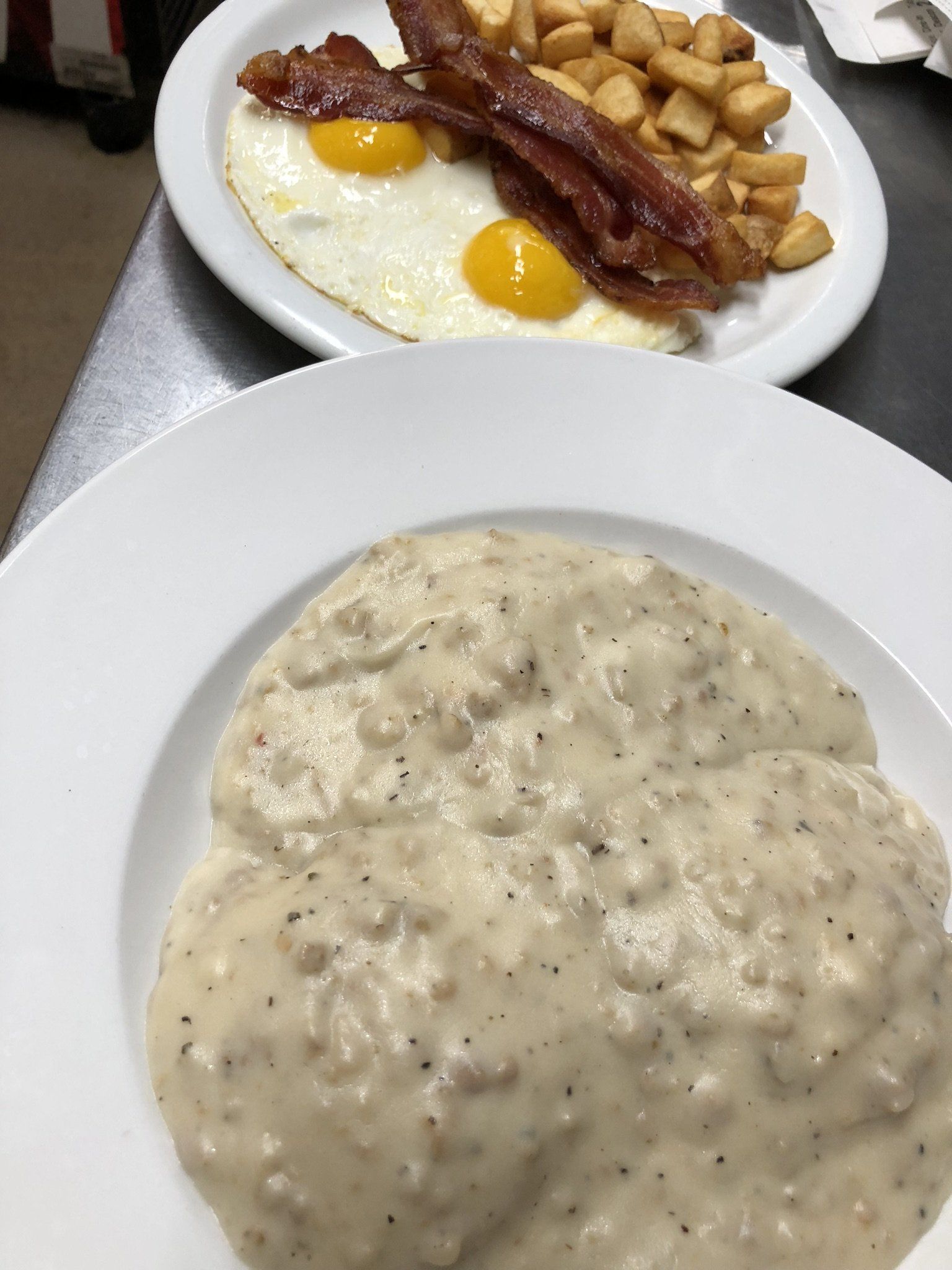 Sautéed ribeye bites and tomatoes over onion strings with side of horseradish cream sauce.